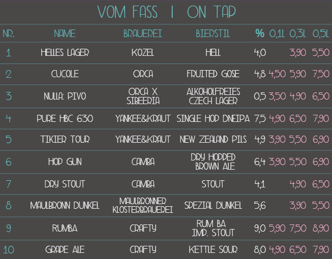 Stand 07.10.2025 - die aufgelisteten Biersorten sind limitiert verfügbar und daher ohne Gewähr.